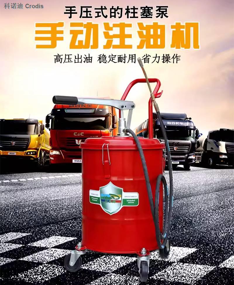 The H40 manual grease filling machine is a plunger pump powered by manual pressure, which does not require power or air supply, has the advantages of low force, high oil pressure, and reliable operation. This pump can provide high-pressure lubricant to various mechanical equipment or vehicle lubrication points, as well as centralized lubrication systems, flowing outside the field.Bulk oil can be directly poured into the barrel; 15-30 kg oil drums can be placed together in the drum.